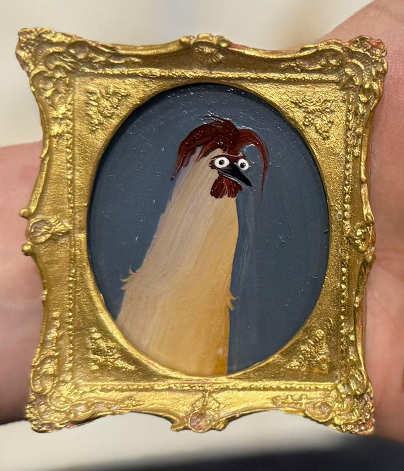An original portrait from Holly’s 2025 ongoing series, Chickens I Have Known.